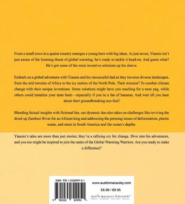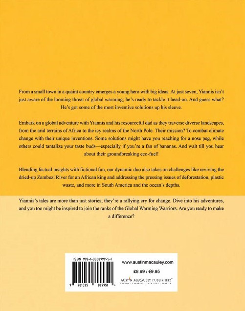 Yiannis and his dad, the Global Warming Warriors, start off by fixing the dried-up Zambezi River for the King of Africa and bringing the drought to an end. Then they embark upon expeditions to the North Pole, South America, and deep under the seas to solve the effects of global warming, deforestation, and plastic waste using their unique and fun ideas. With their innovative approach and unwavering commitment, Yiannis and his dad are making a significant impact on the planet and inspiring others to do the same. Their journey is a testament to the power of creative thinking and action, showing that anyone can make a meaningful contribution to preserving our planet.